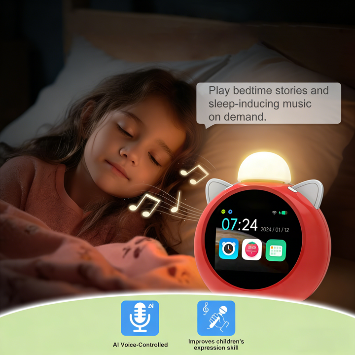 Features advanced technology for interactive conversations, this smart alarm answers kids' curious questions, tells bedtime stories, and provides educational content. Voice-controlled operation makes it easy for children to use independently.